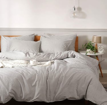 Bring calm sophistication to your bedroom with soft gray striped bedding — a timeless blend of comfort and style. Perfect for creating a relaxed, modern look, this set adds texture and subtle pattern to any space for that effortlessly cozy feel.